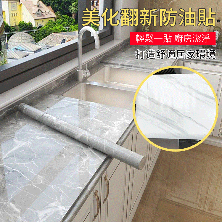 半小時前限時搶購 廚房貼紙防水防油大理石家具貼膜自粘牆紙瓷磚灶台桌面櫃子保護膜 - 4卷,僅需NT$999